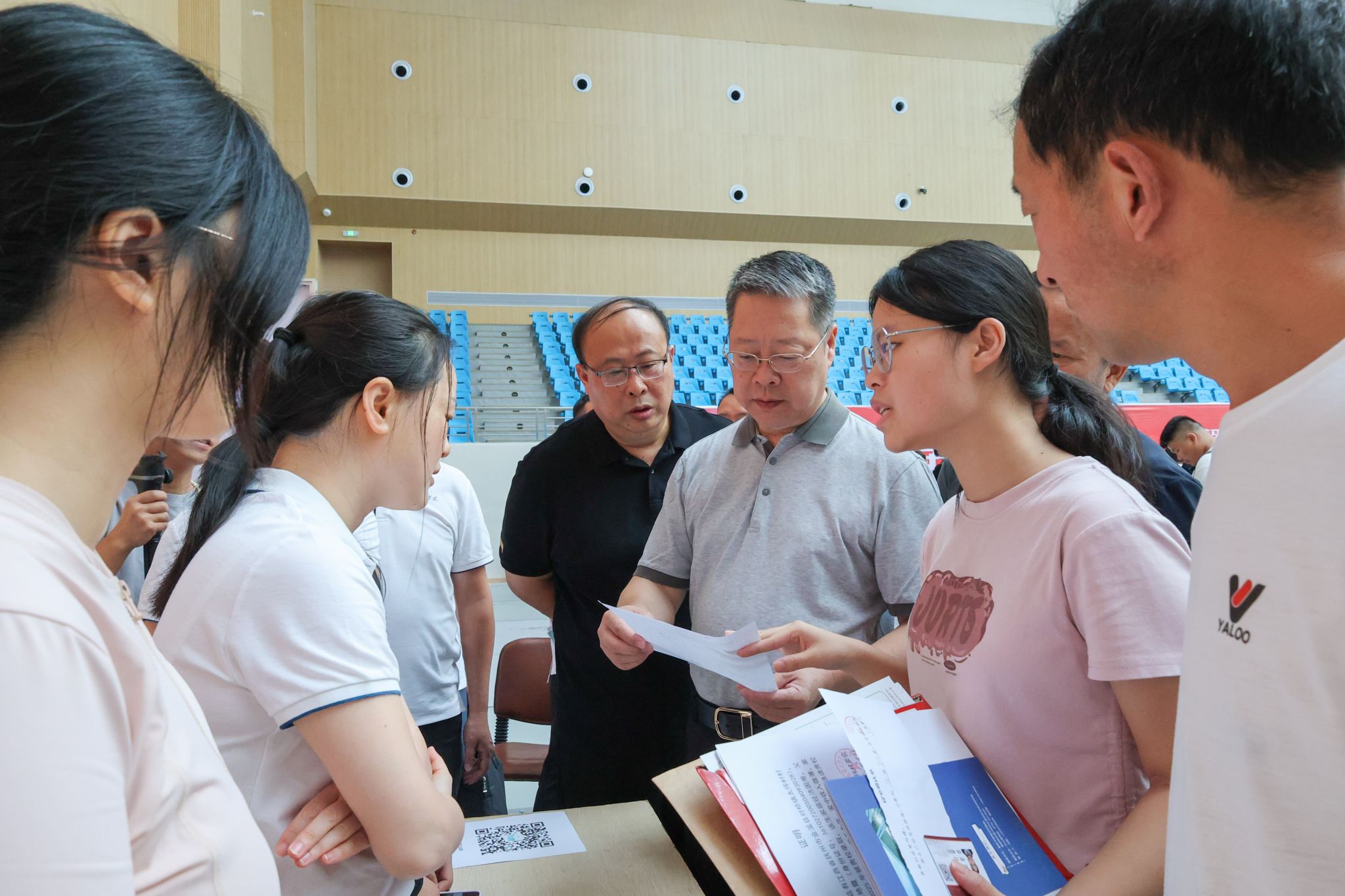 在家校领导邱建军、邱建丁、左群、陈文新、蓝晓植、邓亦林深入迎新现场,看望慰问从家乡启程、奔波至此的新生与家长,在亲切交流中送上关怀与祝福。校领导还仔细查看了报到点各功能区域运行情况,详细询问新生报到流程、人数统计、服务保障等工作进展,对工作人员和志愿者的辛勤付出表示肯定,并叮嘱大家要耐心解答疑问、贴心提供帮助,让新生和家长感受到“家”的温暖。