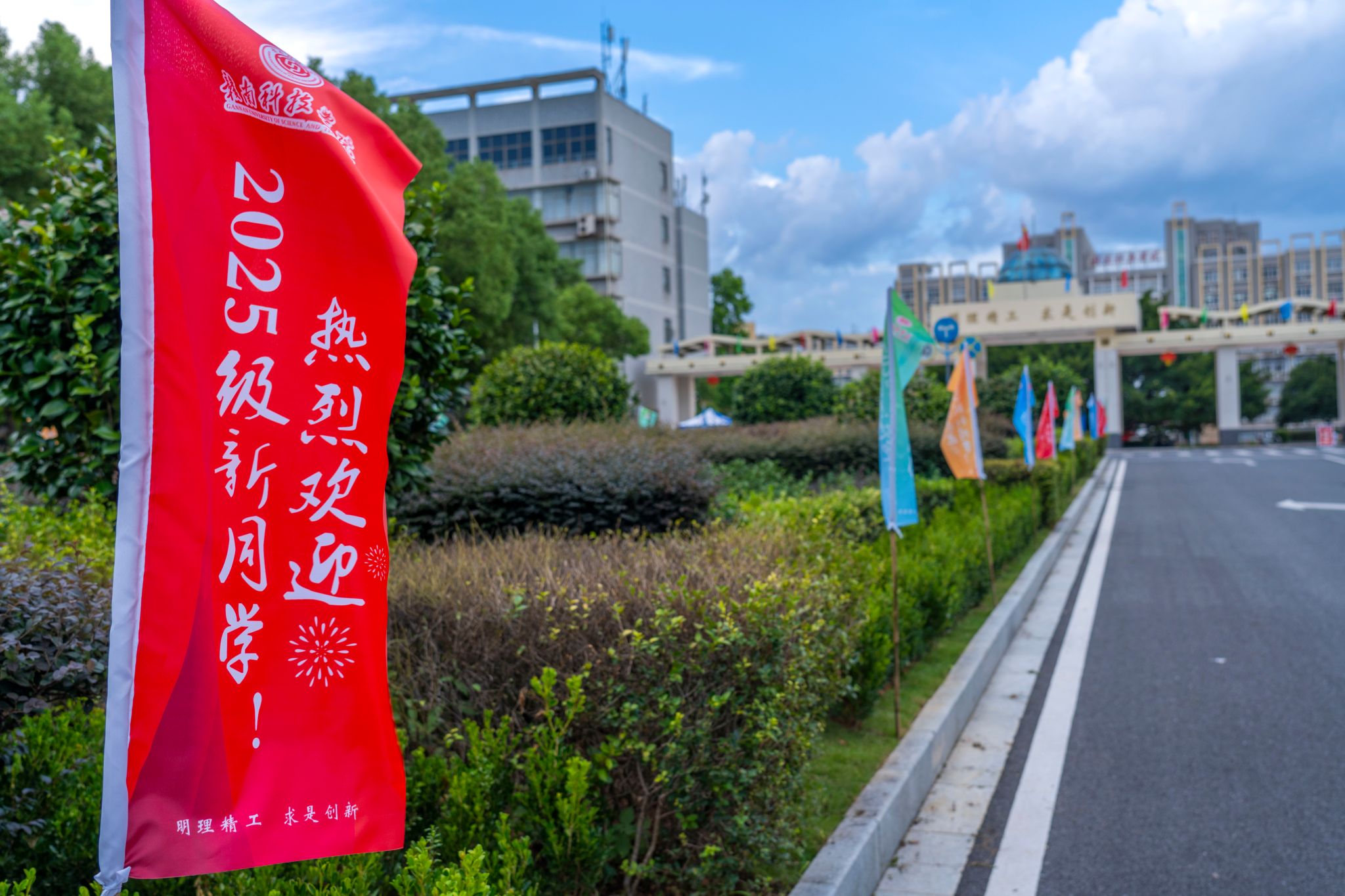 校园内“欢迎入校”的横幅高高悬挂,鲜红色的迎新拱门上“欢迎新同学”几个大字格外醒目,志愿者们手持引导牌穿梭其间,热烈氛围中透露出浓浓暖意。