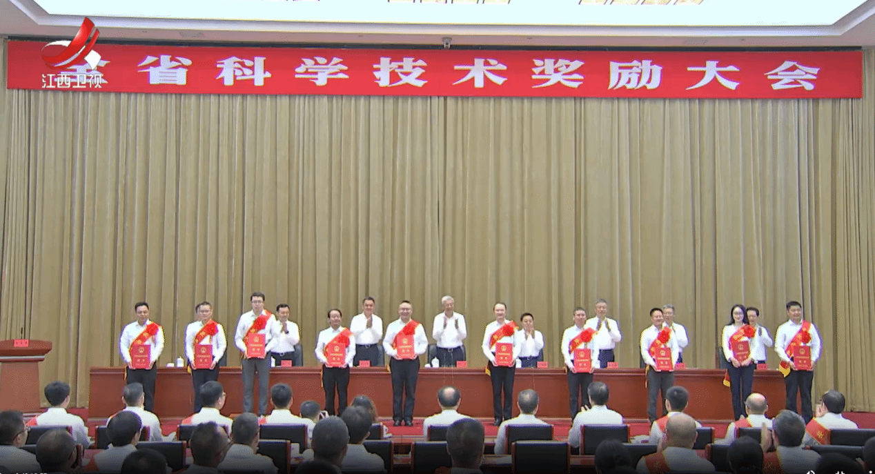 本网讯:9月11日,全省科学技术奖励大会在南昌召开。省委书记尹弘出席并讲话,省长叶建春主持。会上宣读了《江西省人民政府关于2024年度江西省科学技术奖励的决定》,并为获奖代表颁奖。我们党委副书记、校长邱建丁教授团队申报的“基于共价有机框架精准合成的放射性铀分离提取研究”项目荣获自然科学奖一等奖。