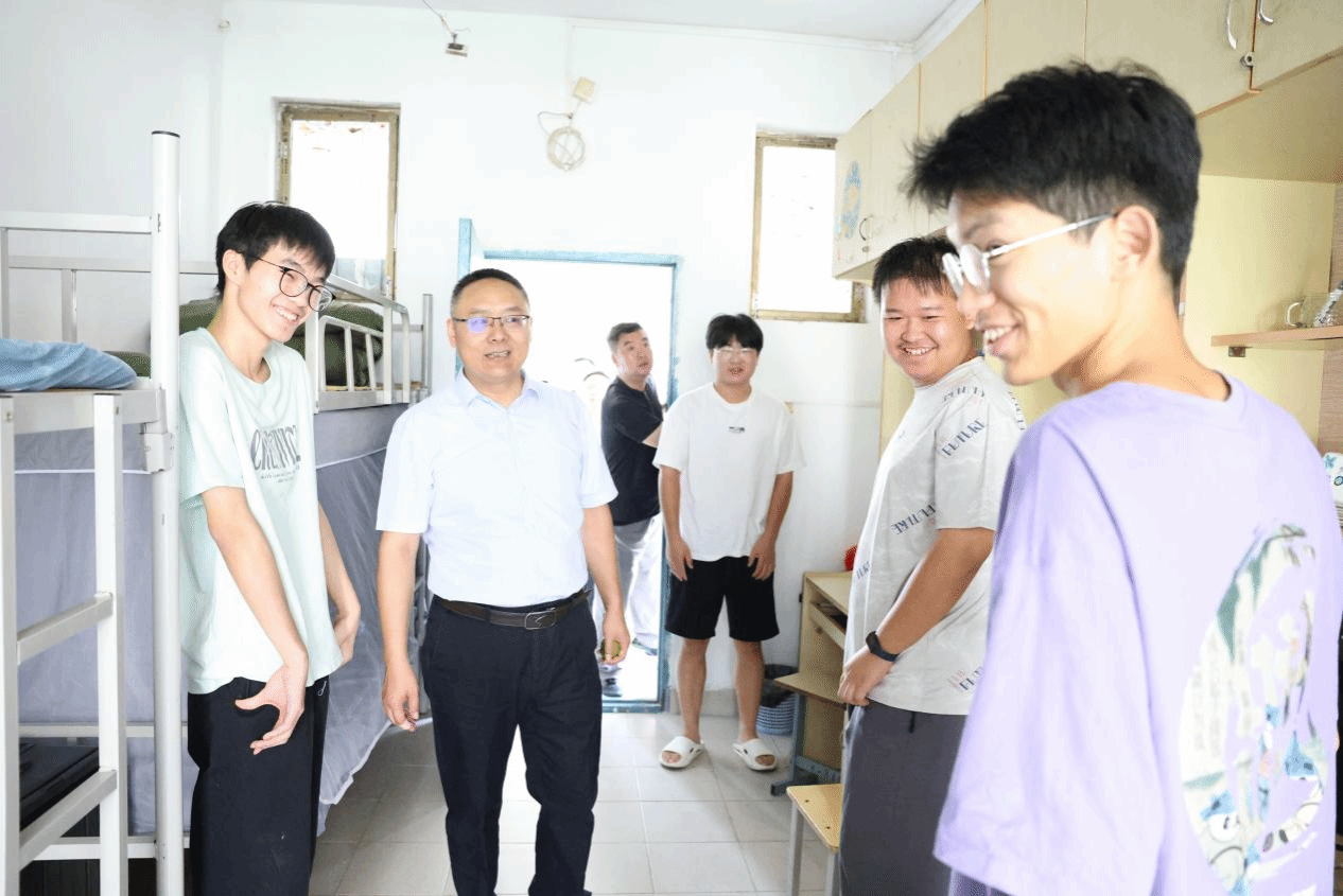 邱建丁走进新生宿舍,与刚安顿下来的新生们面对面交流。“来自哪里呀?”“对宿舍环境还适应吗?”“饮食还习惯吗?”校长的亲切问候让初入校园的新生与家长倍感温暖。在与新生的交谈中,邱建丁重点叮嘱同学们,大学是人生成长的重要阶段,要尽快适应新的学习和生活环境,认真读书,打好专业基础,树立考研志向,凭借不懈的努力实现人生梦想。