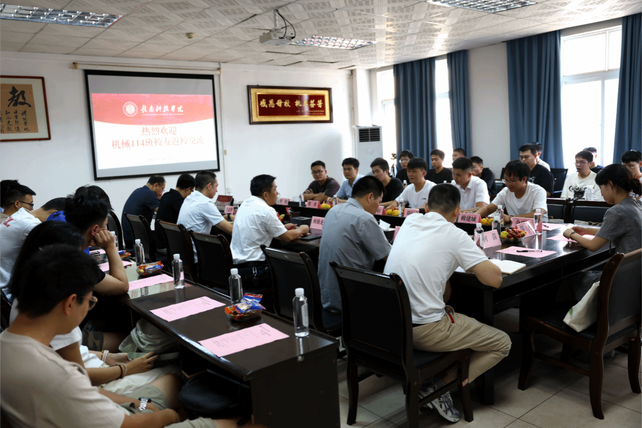 本网讯:10月4日,我们智能制造与材料工程学院机械114班校友在毕业十周年之际重聚母校,分享十年来的成长与突破,续写与母校、与同窗的深厚情谊。学校党委委员、副校长何锦龙,智能制造与材料工程学院党委委员、副院长刘辉,以及学院教师代表与校友们在工程楼416会议室开展座谈会。