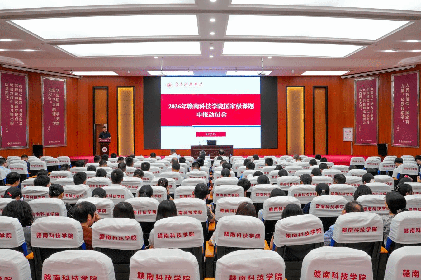 本网讯:10月16日下午,我们在图书馆报告厅召开2026年国家级课题申报动员会。学校党委副书记、校长邱建丁出席会议,各二级学院院长、科研副院长、教学科研负责人、科研秘书以及高层次人才、骨干教师代表等申报人员,科技处相关人员参加会议。会议由科技处处长张耀平主持,邀请江西理工大学经济管理学院副院长、博士生导师、江西省青年井冈学者郑明贵教授作专题讲座 。