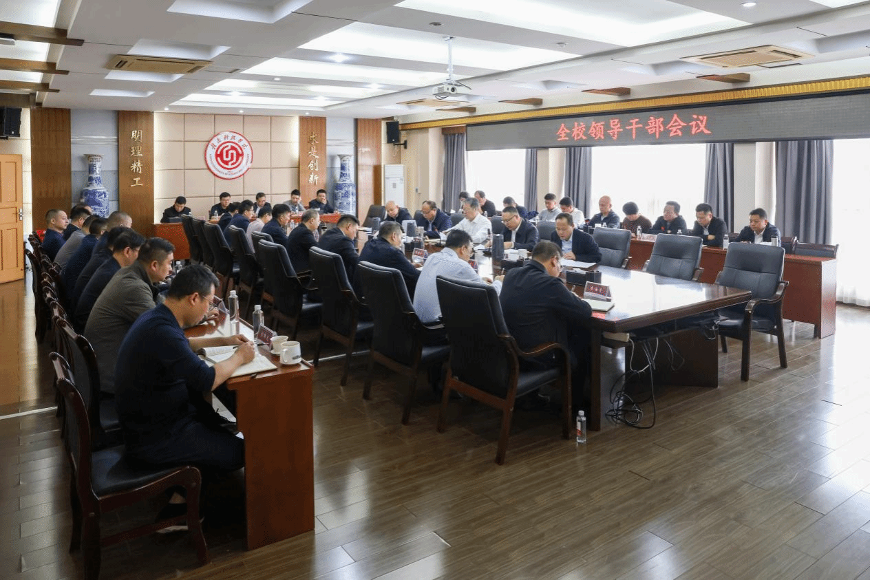 本网讯:10月29日,学校召开领导干部会议,传达党的二十届四中全会精神,对学习宣传贯彻工作进行动员部署。校党委书记邱建军主持并讲话。党委副书记、校长邱建丁传达了党的二十届四中全会精神和全省、全市领导干部会议精神。学校党委委员、副校长左群,党委委员、纪委书记陈文新,党委委员、组织人事部部长蓝晓植,以及全体中层干部参加。