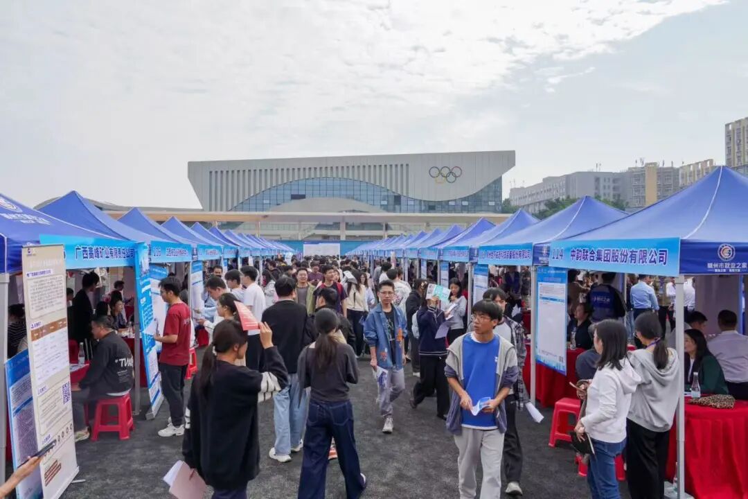 本网讯:10月30日,由江西省总工会主办,赣州市总工会、赣州市人力资源和社会保障局、赣州市教育局、248cc永利集团承办,赣州市人才集团有限公司协办的全省“工会帮就业·情牵毕业生”专场招聘会暨“就”在赣州“虔城”似锦——248cc永利集团2026届毕业生秋季就业洽谈会在学校田径场顺利举办。本次招聘会吸引了来自全国各地的优质企业327家,广东汕尾、浙江遂昌、福建长汀等地人社部门组团来校招聘,提供就业岗位1190个,计划招聘(岗位需求人数)12000余人,招聘范围涵盖资源矿业、机械电气、材料冶金、电子信息、经济管理、文法艺术等多个领域,与学校学科专业设置高度契合。