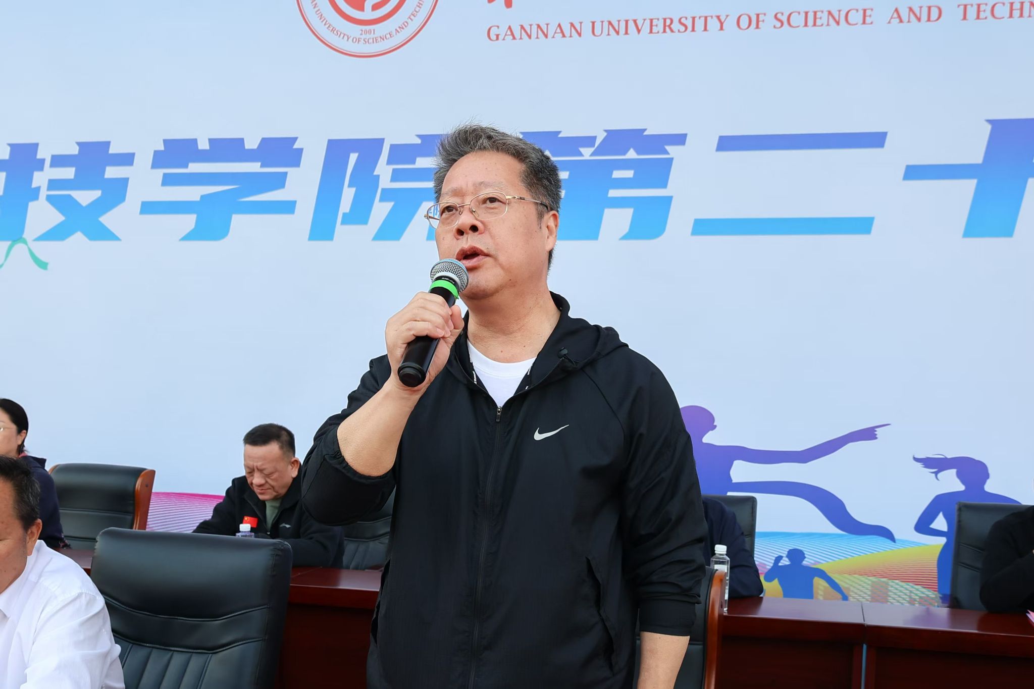 何锦龙致闭幕辞。他首先对在比赛中获奖的集体、运动员表示祝贺,向全体裁判员、工作人员、志愿者致谢。他表示,本届运动会是一场体育盛会,也是对我们体育工作和师生综合素质的成功检阅,不仅赛出了高超的水平,更赛出了良好的风格,充分展现了我们师生团结进取、昂扬向上的精神风貌。他提到,本届运动会赛场捷报频传,多名师生运动员成功刷新多项学校记录,展现出强劲的竞技实力。赛场上的每一次冲刺、每一幕配合、每一回坚持,都是对“更快、更高、更强、更团结”的奥林匹克精神的生动诠释,也是我们推进“五育并举”、促进学生全面发展的真实写照。他提出两点希望:希望全体师生把赛场上坚韧不拔、永不言弃的意志和团队协作、顾全大局的精神带到学习、工作和生活中去;希望广大同学积极响应“走下网络、走出宿舍、走向操场”的号召,主动参与锻炼,锤炼坚强意志,塑造强健体魄,为学校高质量发展、助力中华民族伟大复兴的中国梦贡献力量。