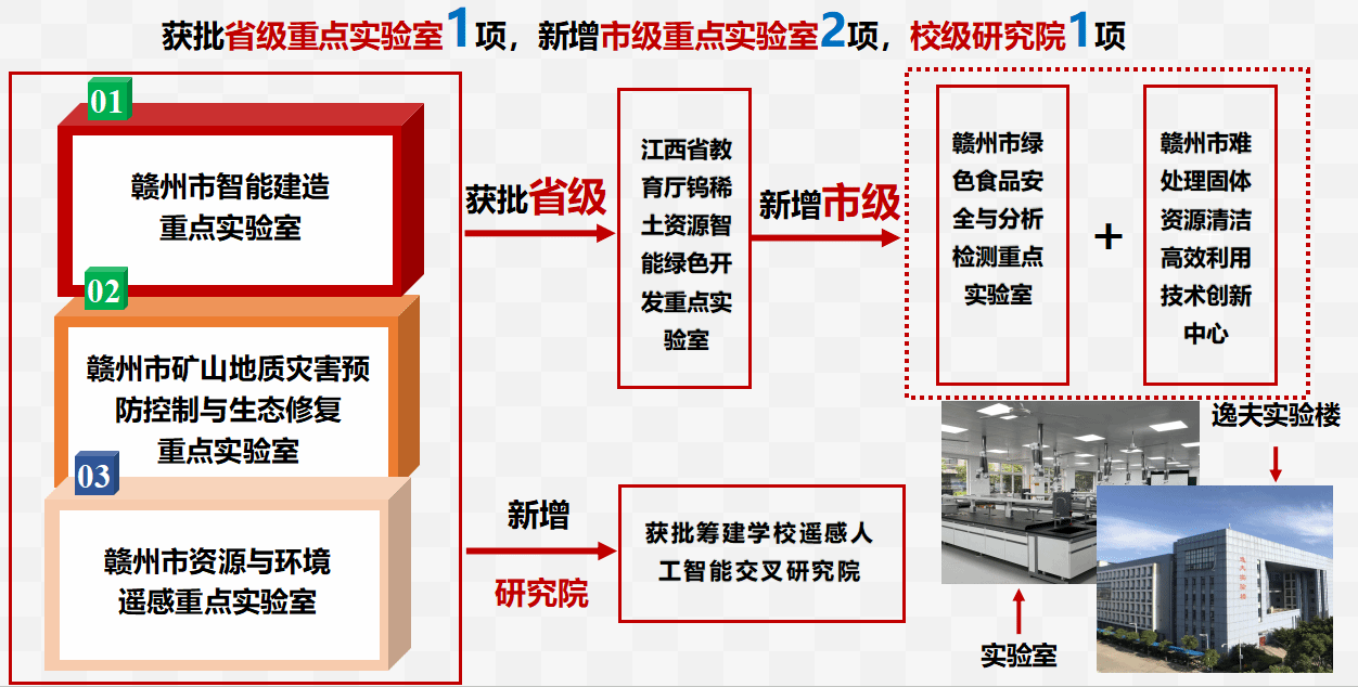 学院强化矿业学科特色建设,与章源钨业、江钨集团合作共同推进省级产业学院建设;与章源钨业共建“应用型本科产教融合教学改革虚拟教研室”平台和“高水平产教融合型教学团队”。学院党委推动实验室各项工作有序开展,提供具体的指导意见和决策支持,培养和选拔一批具有创新精神和科研能力的骨干人才。学院平台建设扎实推进,拥有“钨稀土资源智能绿色开发重点实验室”1个省级重点实验室,以及“矿山地质灾害预防控制与生态修复重点实验室”“赣州市智能建造重点实验室”“赣州市绿色食品安全与分析检测重点实验室”“赣州市难处理固体资源清洁高效利用技术创新中心”等4个市级平台。在赣州市科学技术局公布获评的16个优秀市级科研创新平台中,学院“矿山地质灾害预防控制与生态修复重点实验室”和“赣州市智能建造重点实验室”两个重点实验室顺利通过赣州市验收并获得优秀评价结果,充分彰显了学院科研平台建设能力和服务区域及地方经济社会发展的强大动力。
