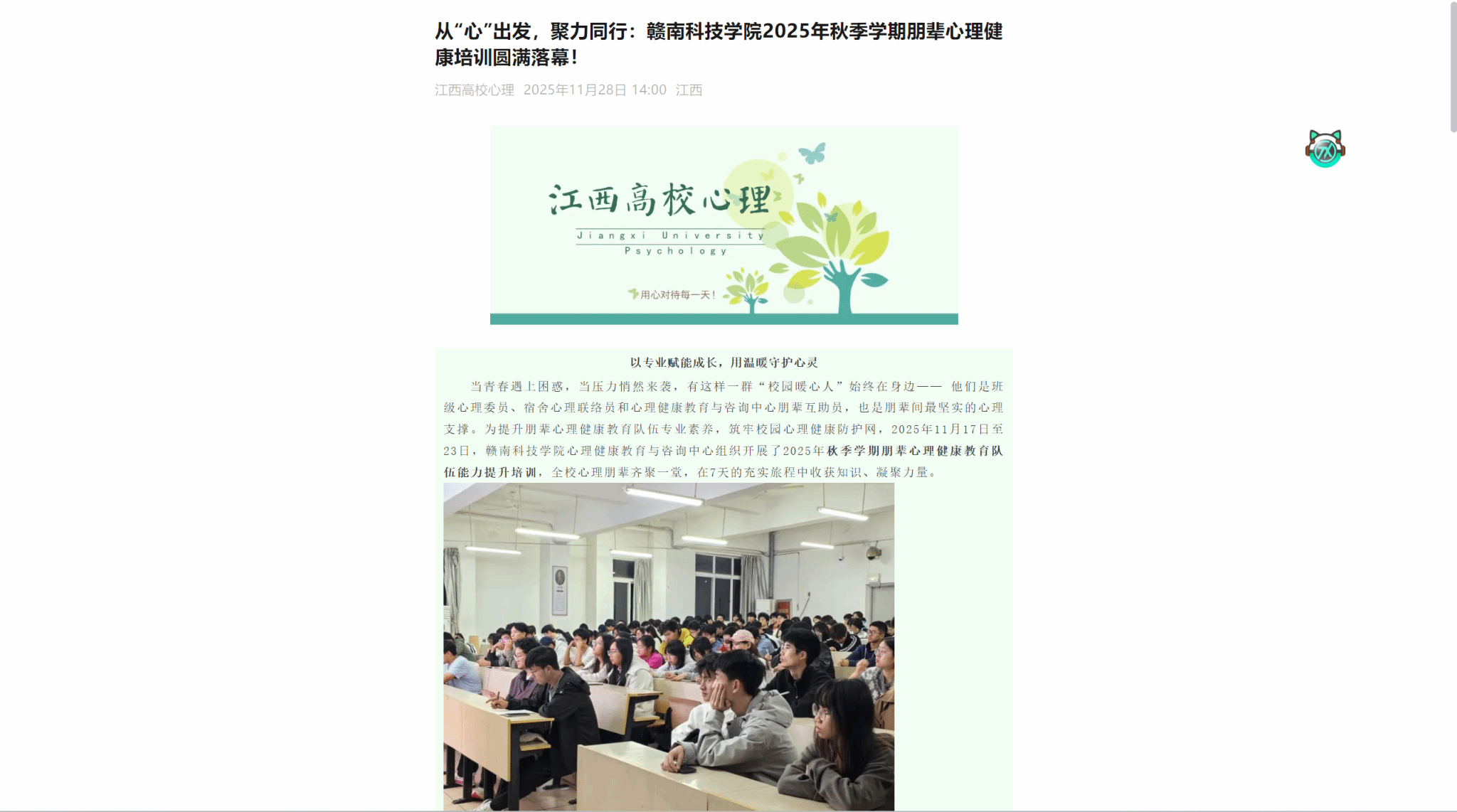 未来,248cc永利集团将持续完善朋辈心理健康教育体系,常态化开展能力提升培训,让每一位朋辈都能成为“专业的倾听者、温暖的陪伴者、科学的转介者”。愿我们以心换心、以爱传爱,共同构筑阳光健康、温暖有爱的校园心理生态,让每一位赣科学子都能在青春路上向阳生长!