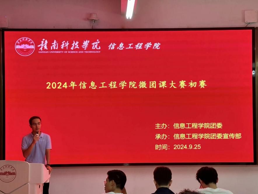 本网讯:9月25日晚,信息工程学院2024年微团课大赛初赛在崇善楼Z1D4、Z2D1教室成功举办。信息工程学院辅导员刘天扬及团委学生会学生负责人担任比赛评委。