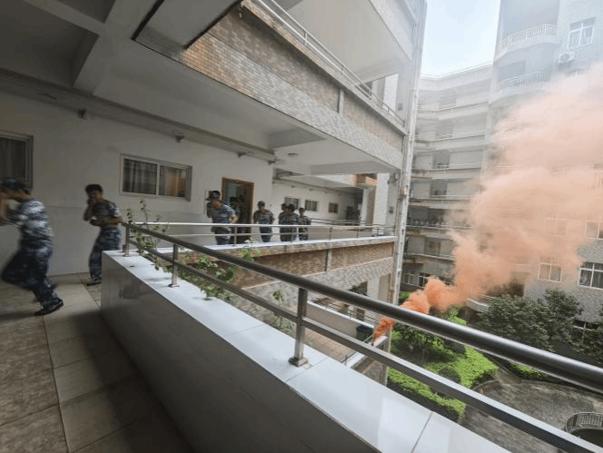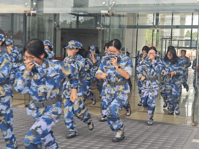 在火灾应急疏散演练环节中,学校真实模拟“教学楼内突发火灾,浓烟蔓延需紧急疏散”的场景。随着模拟火灾警报响起,各楼层引导员迅速到位,组织所在楼层的同学们捂住口鼻,弯腰低姿向楼外安全区域撤离。演练中,严格遵循“不惊慌、不拥挤、不贪恋财物”等原则,在引导员的指挥下有序通过楼梯间全部疏散至田径场集合点。
