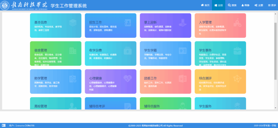 聚焦“两层半”高素质应用型人才培养目标,当前学工部在信息化工作中坚持“夯基础、强载体、重融通、增实效”的建设理念,以“资源实时共享、流程高效有序、问题及时反馈、结果精准实用”为目标,在加强软硬件建设的同时,同步强化配套制度完善。已上线掌上迎新、基本信息查询、用电申请、请销假审批、宿舍床位管理、宿舍晚归异常预警、辅导员工作日志等11个模块20余项师生常用功能,信息化服务育人的水平快速提升。下一步,学工部将加快推进与校内其他软件平台的数据对接工作,力争在学生评价综合改革、数字画像构建和成长档案建设等方面实现新突破,为学校教育事业高质量发展提供支撑。
