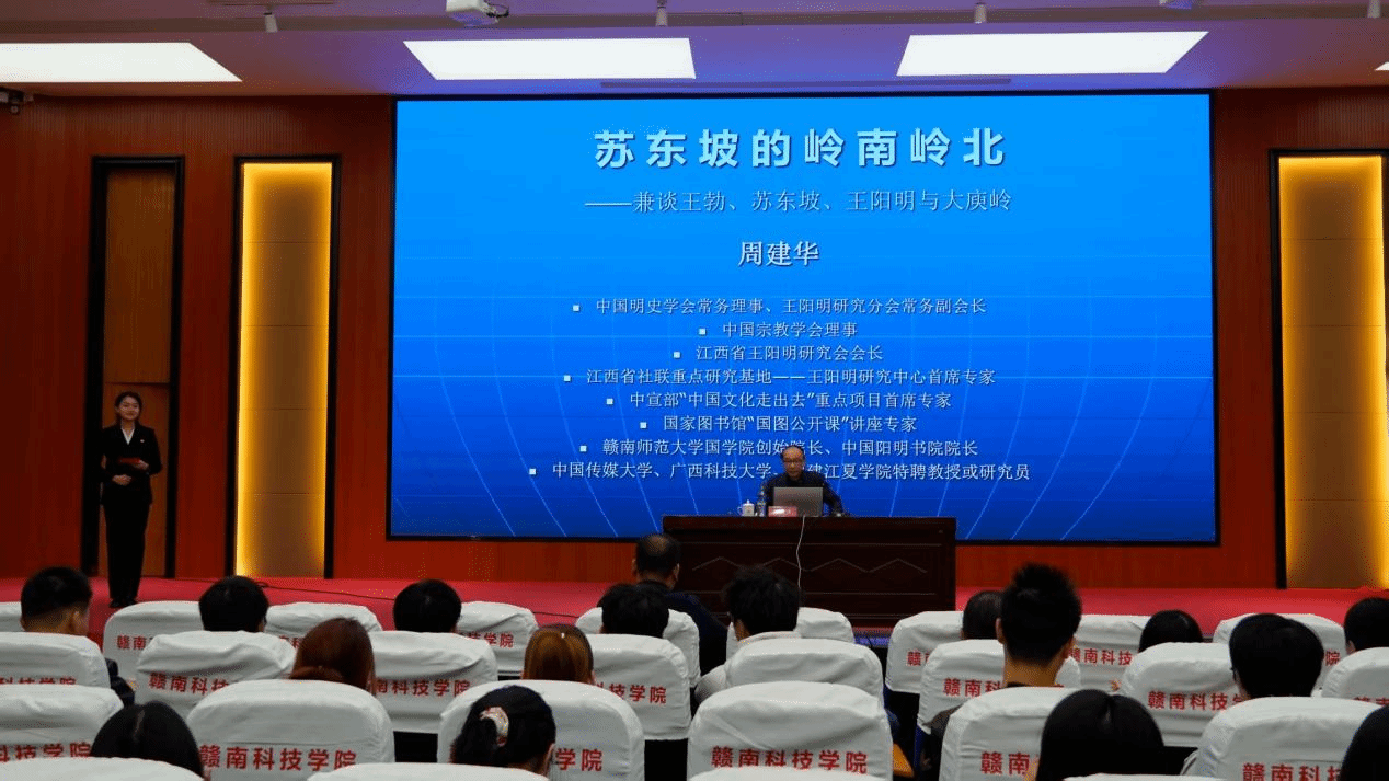 本网讯:10月27日晚,我们第102期“金沙湾”讲坛在图书馆学术报告厅举行。本次讲坛特邀中国明史学会常务理事、王阳明研究分会常务副会长周建华教授作《苏东坡的岭南岭北》专题讲座。现场300余名学子齐聚一堂,共赴这场跨越时空的文化之约。