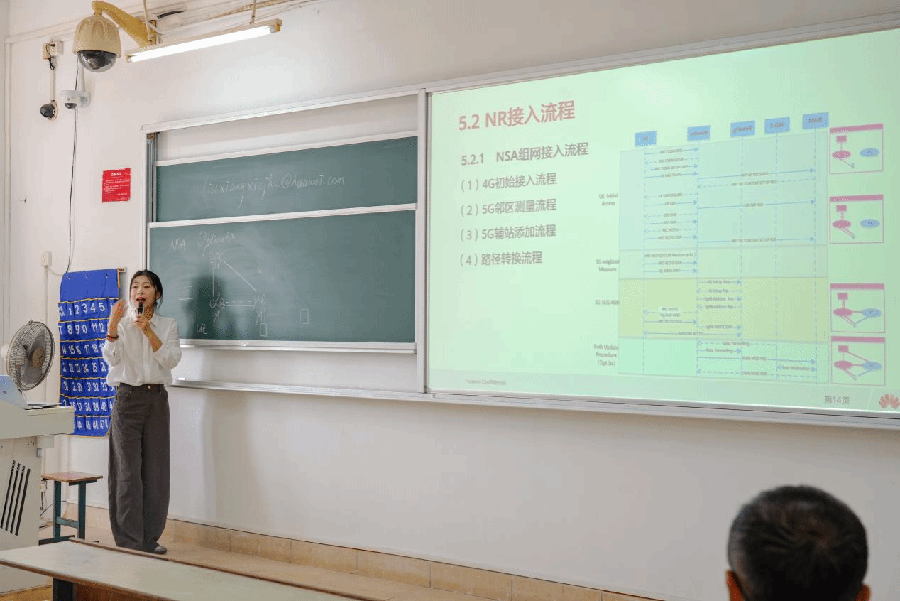 本网讯:我们自2023年5月与赣州市人民政府、华为技术有限公司携手共建电子信息现代产业学院以来,信息工程学院始终以实现校企深度融合为核心目标,依托已建成的五个实训室,以“物联网技术”与“鲲鹏技术”两个专班为人才培养载体,着力培育既能满足华为生态链企业需求,又能服务广大电子信息企业的应用型本科人才。本学期,信息工程学院通信工程教研室的《移动通信》课程采用华为公司编写的《5G无线技术及部署》作为教材,并特邀了华为5G资深培训工程师刘祥熹来校授课,第一时间将企业前沿技术融入教学。