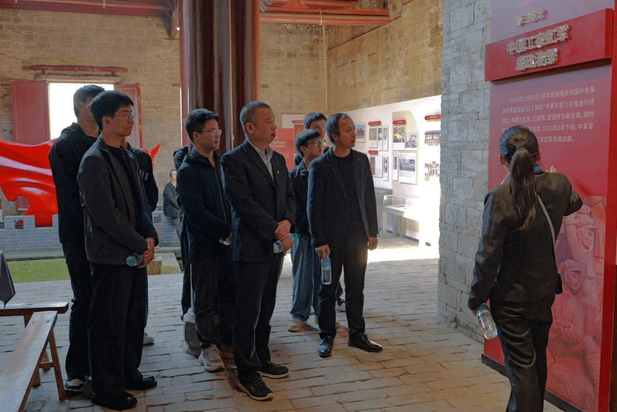 37名党员师生在庄严肃穆的革命遗址前聆听讲解、参观文物,回顾了毛泽东、朱德等老一辈革命家在此运筹帷幄、领导革命的艰苦历程。中央苏区反“围剿”战争纪念馆里,通过文物保存、多媒体展陈与场景复原,全面展现了那段波澜壮阔的斗争史。师生深刻体悟红军将士“诱敌深入”的军事智慧与“不怕牺牲”的革命豪情。
