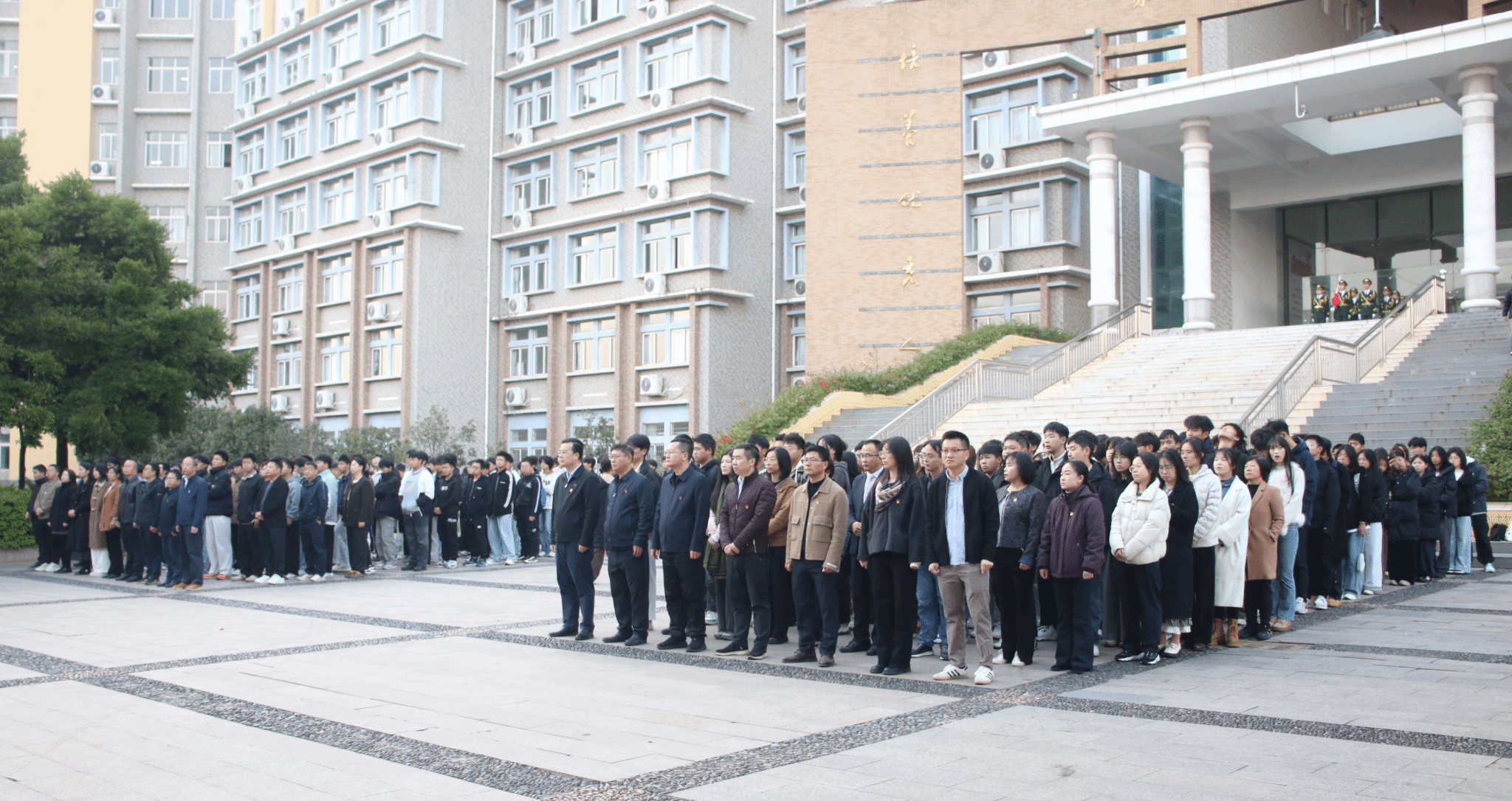 本网讯:11月24日清晨,资源与土木工程学院在崇善楼北门广场举行“深入学习贯彻党的二十届四中全会精神”主题升旗仪式。马克思主义学院院长梁键及教师代表、资源与土木工程学院党委书记刘俊峰及领导班子、全体辅导员、入党积极分子、青马班成员共计200余人参加此次升旗仪式。