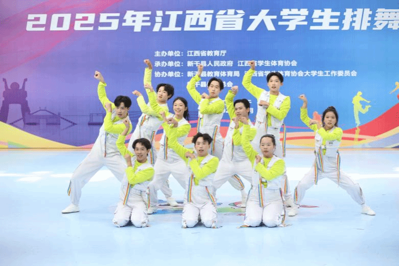 本网讯:11月23—26日,由江西省教育厅主办的2025年江西省大学生排舞比赛在新干县体育馆圆满落幕。本次赛事吸引了全省43所高校近千名学子参赛,是省内排舞领域的一次高水平竞技盛会。我们排舞队凭借扎实的功底和出色的发挥,在众多参赛队伍中脱颖而出,斩获本科乙组大集体自选冠军、男子亚军、双人季军、小集体第六名、女子第六名、男子第七名的佳绩。团体总分位列全省第四名,并荣获“体育道德风尚奖”,邱志群老师获“优秀教练员”称号,实现成绩与精神风貌的双丰收。