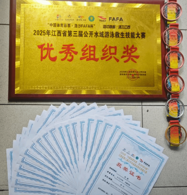 本网讯:10月13日,我们游泳队参加2025年江西省第三届公开水域游泳救生技能大赛,与40多支代表队共计450余名运动员一同竞技。经过激烈的角逐,我们游泳队共获得省级一等奖3项,省级二等奖5项,其中社体231班陈潞获女子公开组沙滩夺标第一名,郭薇获女子公开组沙滩夺标第二名,我们代表队还获得团体总分第四的好成绩。学校荣获“优秀组织奖”。
